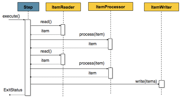 - 한번에 하나씩 데이터를 읽고 chunk를 만든 후 chunk 단위로 트랜잭션을 처리
